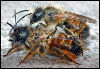 They are non-aggressive and rarely sting. These bees lay their eggs inside existing tunnels, such as those left by wood-boring beetles or the hollow stems of pithy plants. Luckily, mason bees also nest in man-made tunnels