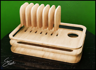 Click to EnlargeI have no idea if this toast serving tray is actually useful. I think it will look cool on the breakfast table. Sometimes cool trumps usefulness. 😀 It is 12" long and 8" wide. All the parts are 1/4" thick. There is a section for a butter knife and a glass butter serving dish. The top rim is optional and it might be easier to clean without the rim.